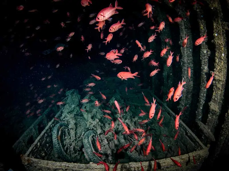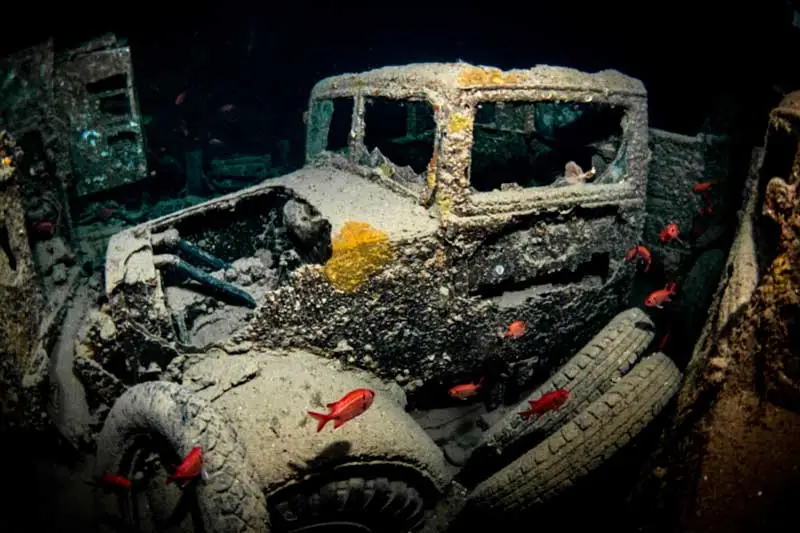 Dive into history and adventure at the SS Thistlegorm, a WWII shipwreck jam-packed with military loot in the Red Sea! This underwater time capsule, just off Egypt's coast, lets you explore motorcycles, trucks, and even a steam locomotive! Imagine cruising past these relics while vibrant marine life adds to the awe. This epic dive isn't just a history lesson, it's an underwater adventure!